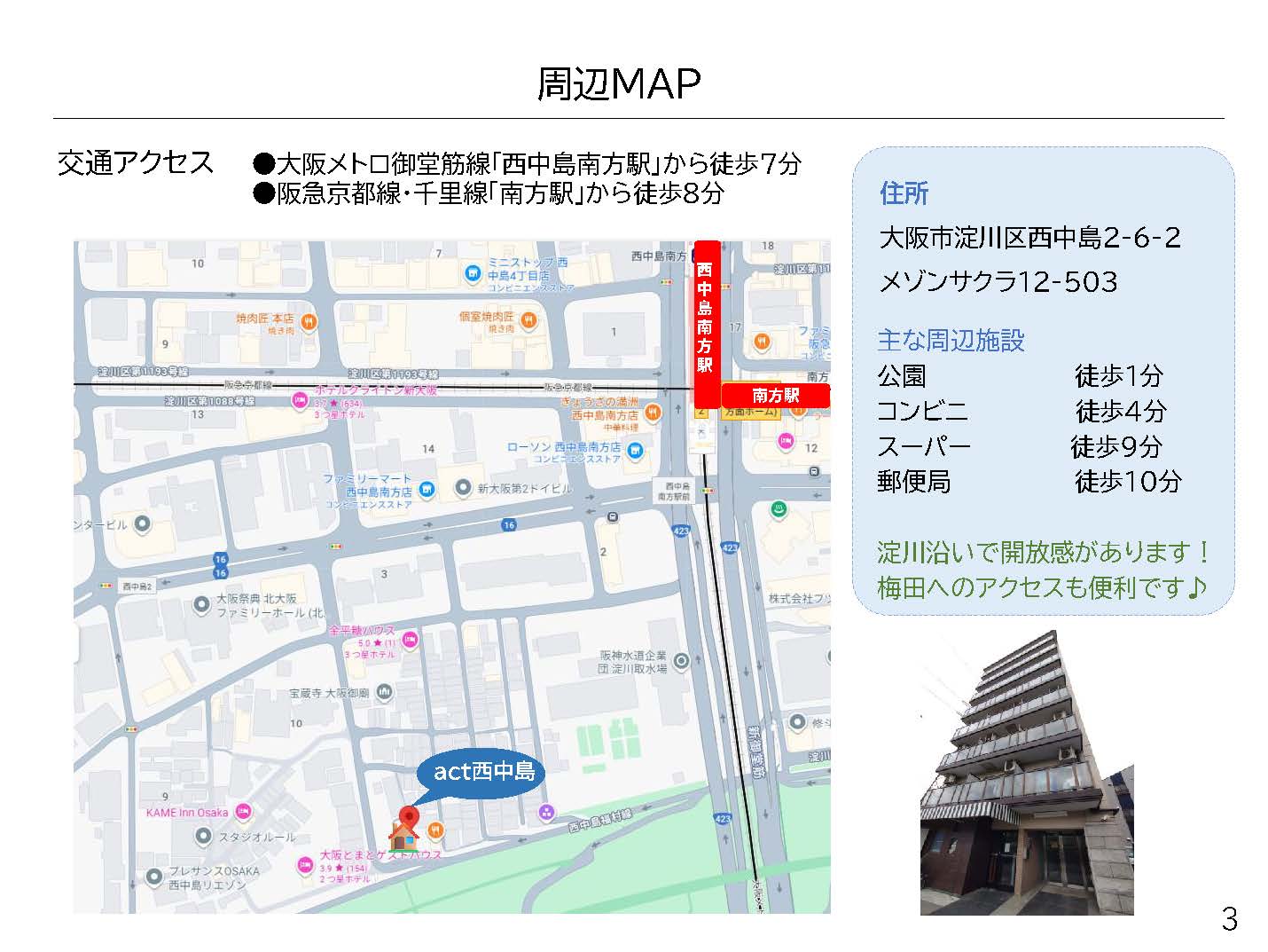 - 最寄り駅:大阪メトロ御堂筋線「西中島南方駅」・阪急京都線「南方駅」