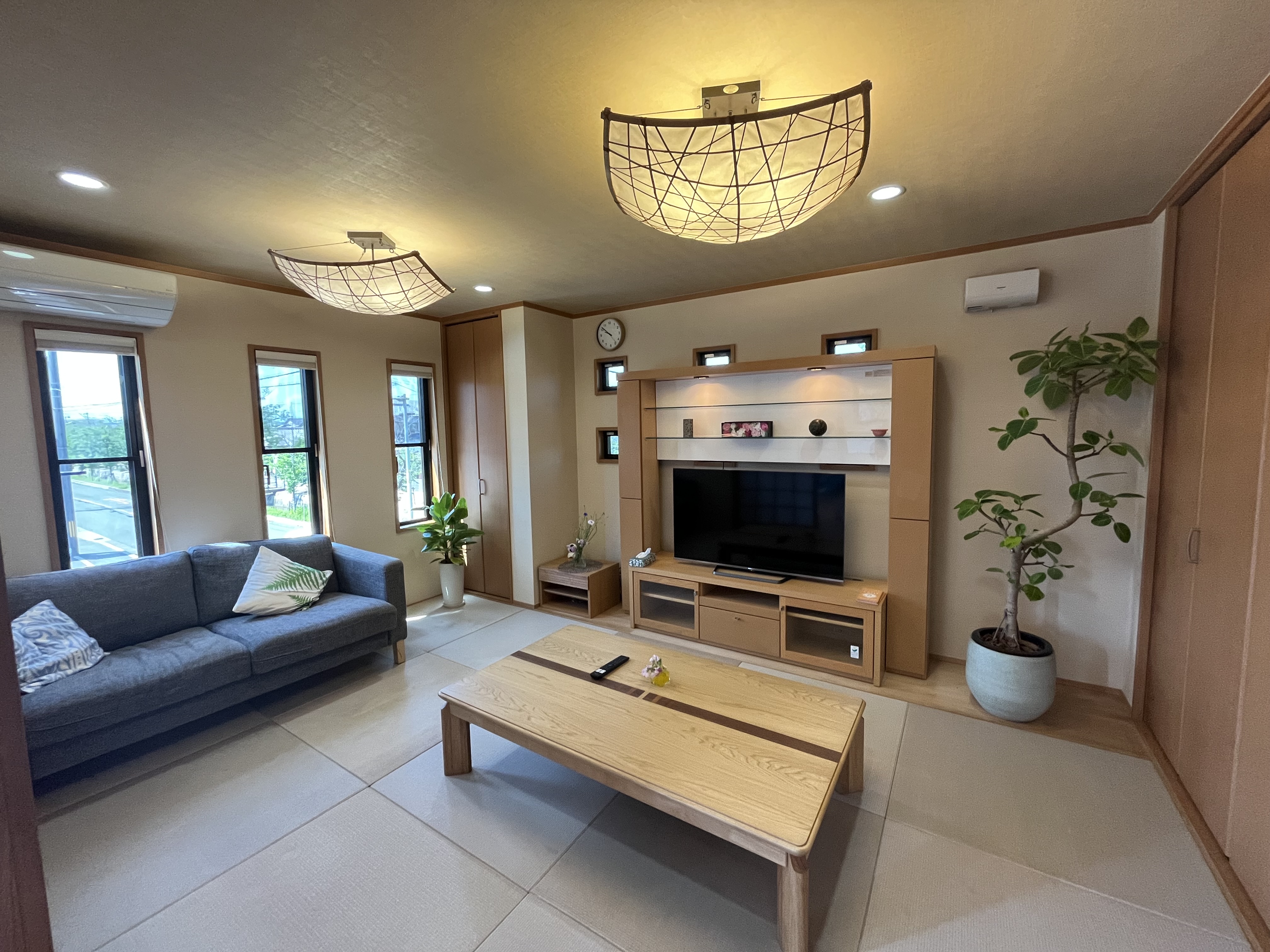 リビングは琉球畳を敷いており、いつでも寝転んでお昼寝できます(-_-)zzz